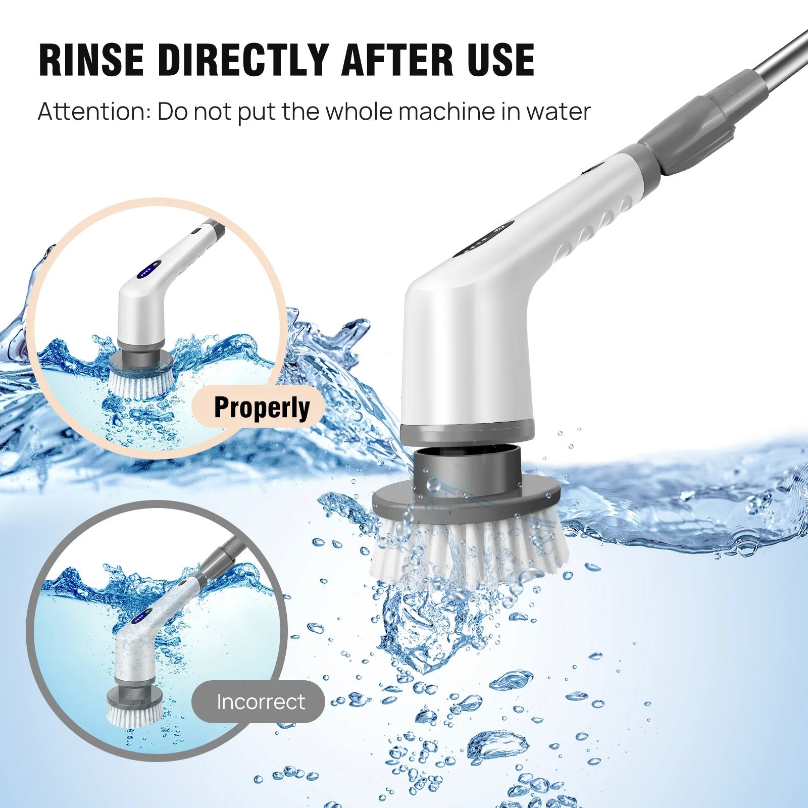 ✨ Waterproof Cleaning Brush Heads -- The brush head for long-lasting performance. The highly sealed design also makes it splash resistant and can be used in wet conditions. (Notice: Only the brush head is waterproof! !)